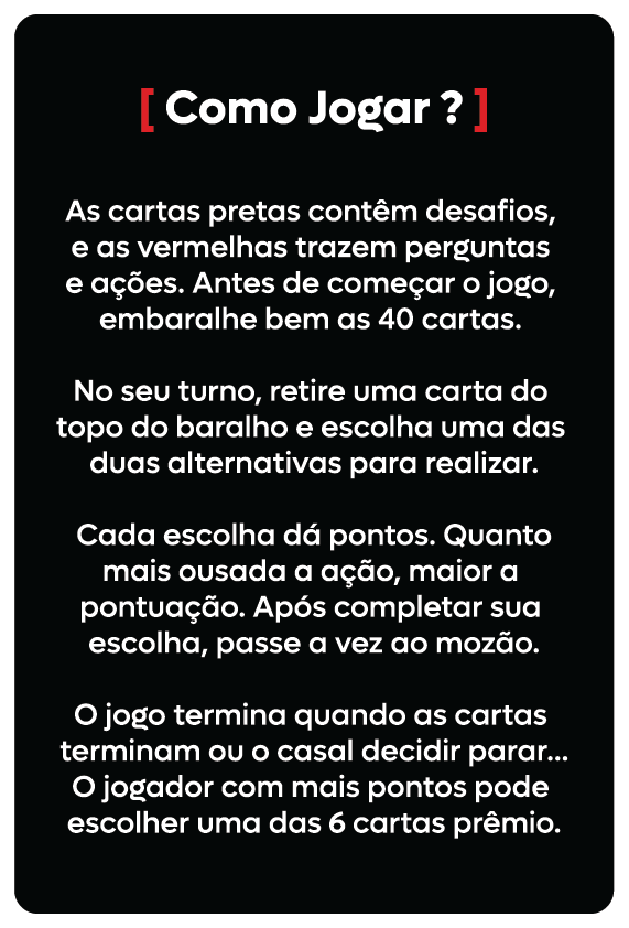 As cartas vermelhas são perfeitas para apimentar o momento e adicionar um toque a mais de intimidade. rsrsrs...